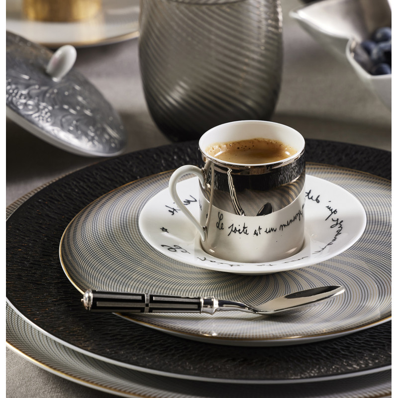 Coffee cup platinum mirror and saucer Le Gabier de Vigie noir 4.4 oz with round