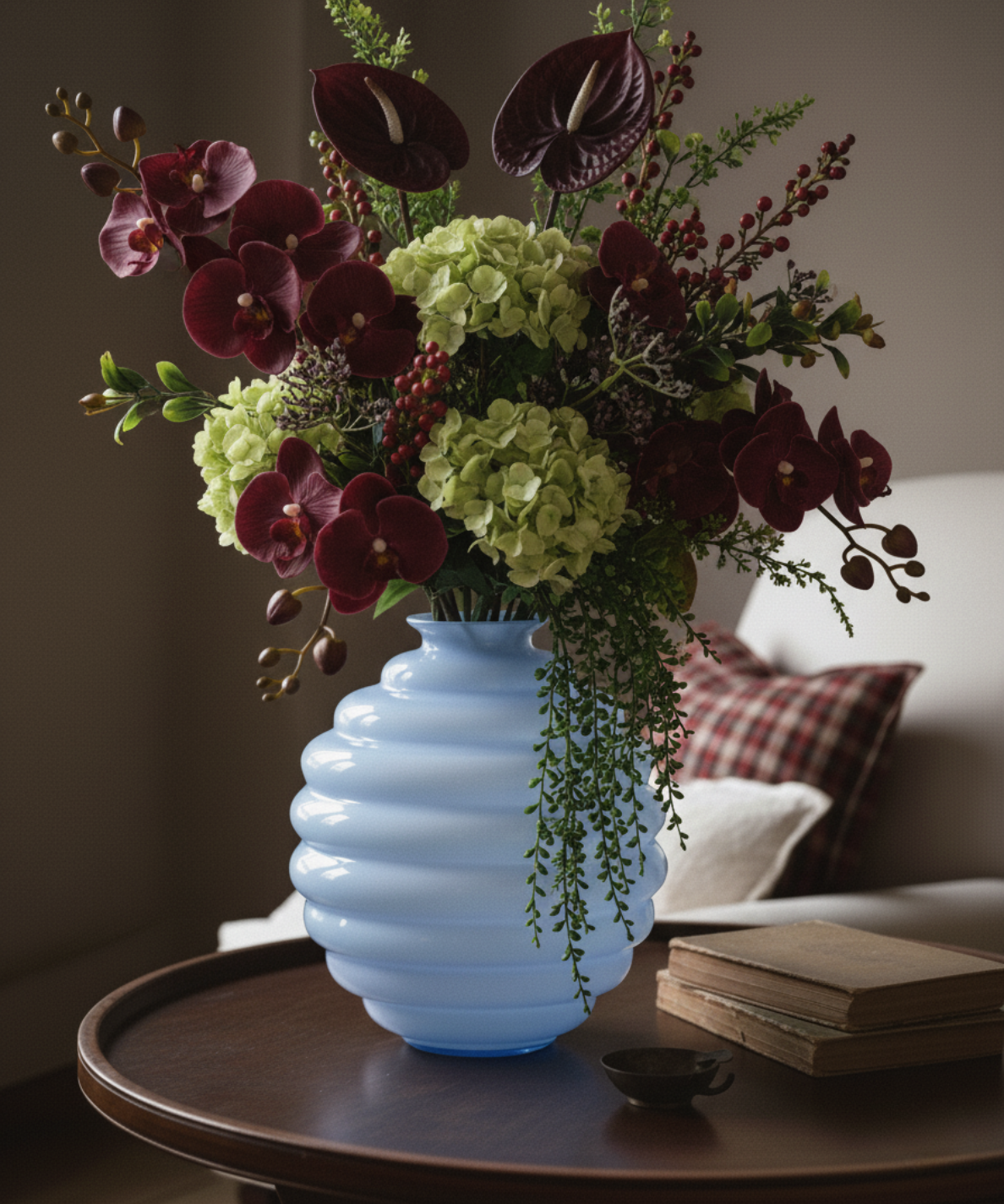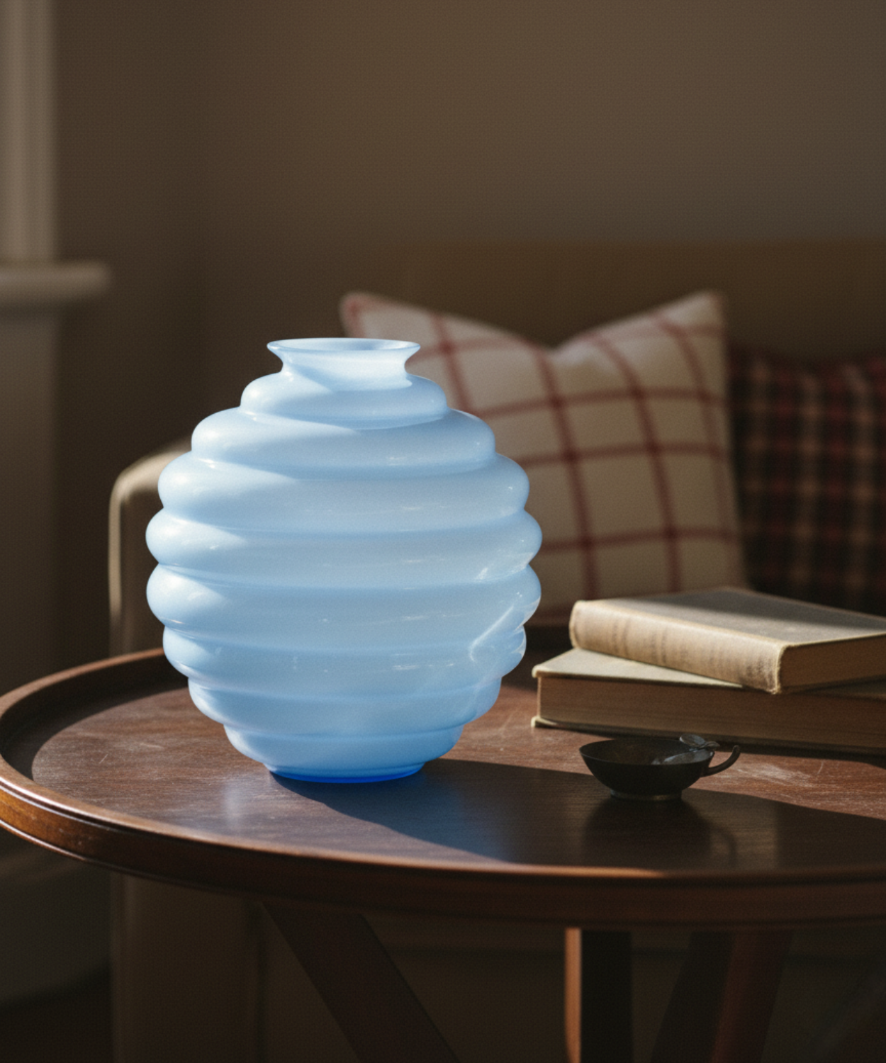 A masterpiece of Murano glass artistry, the Venini Deco Vase in Light Blue embodies timeless elegance and Italian craftsmanship. Hand-blown by skilled artisans, its sleek Deco-inspired silhouette is enhanced by a serene light blue tone — a color that captures both freshness and sophistication.