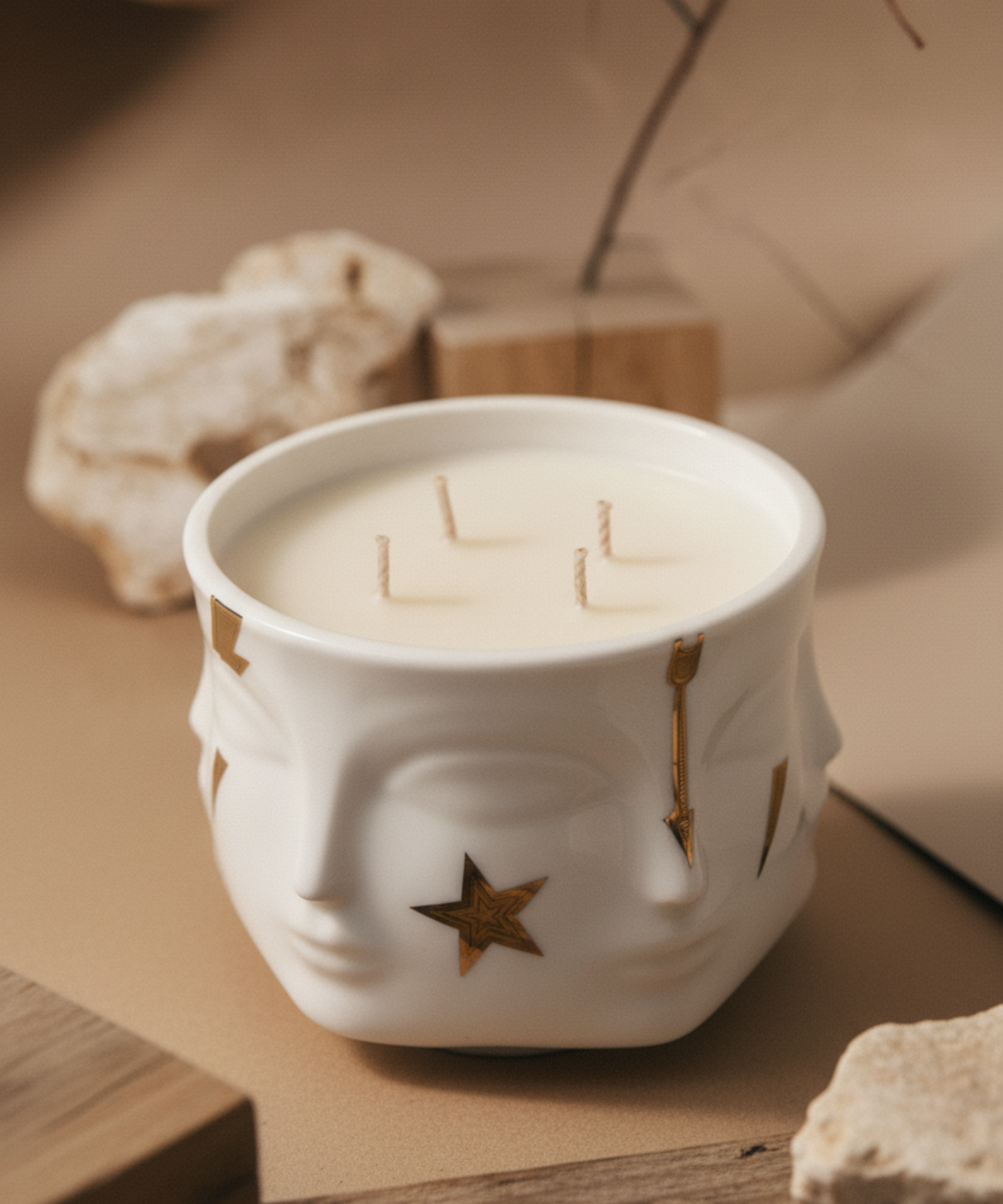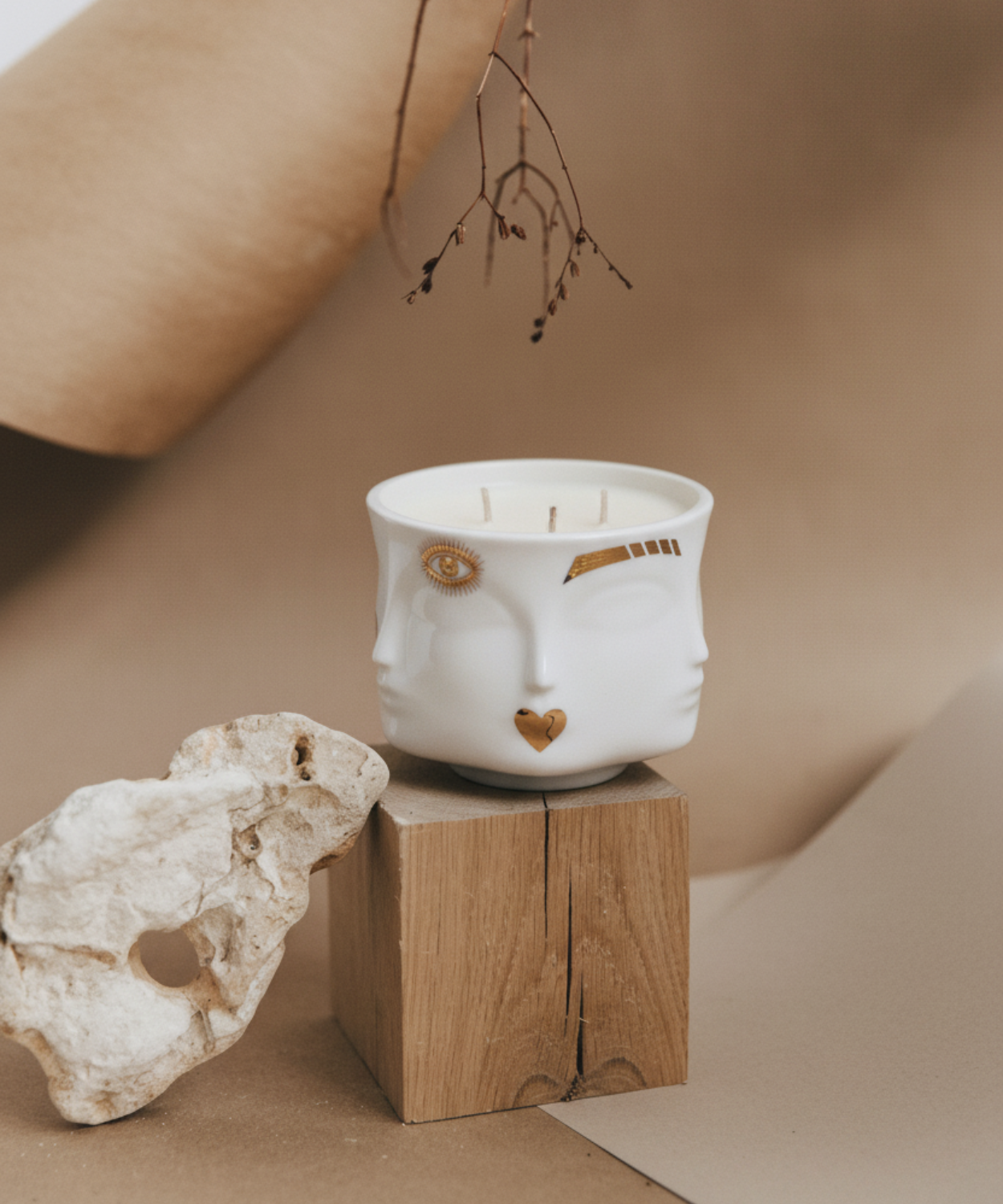 A citrusy floral candle in a porcelain vessel featuring our signature head-turner, Dora Maar, provocatively punctuated with saucy iconography in pure, gleaming gold. Once your candle is gone, the vessel is begging to be reused as a petite pot or vase (we recommend pretty posies).