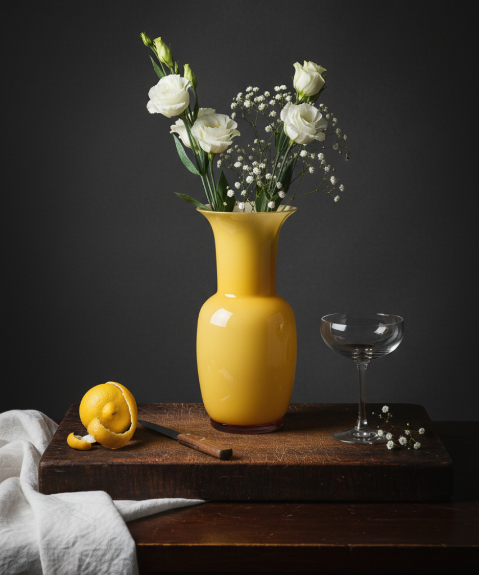 Opalino stands as a beacon of timeless elegance, a masterpiece born from the essence of purity and perfection. Elegance, in its truest form, knows no excess, no frills, and no illusions. Instead, it embodies essential and perfect lines, captivating the soul with its sophisticated simplicity. Crafted from handmade blown glass, Opalino emerges as an ageless beauty, retaining its allure for over eighty years. Throughout this time, it has graced exhibitions and publications worldwide, earning recognition as a symbol of refined taste and understated luxury.