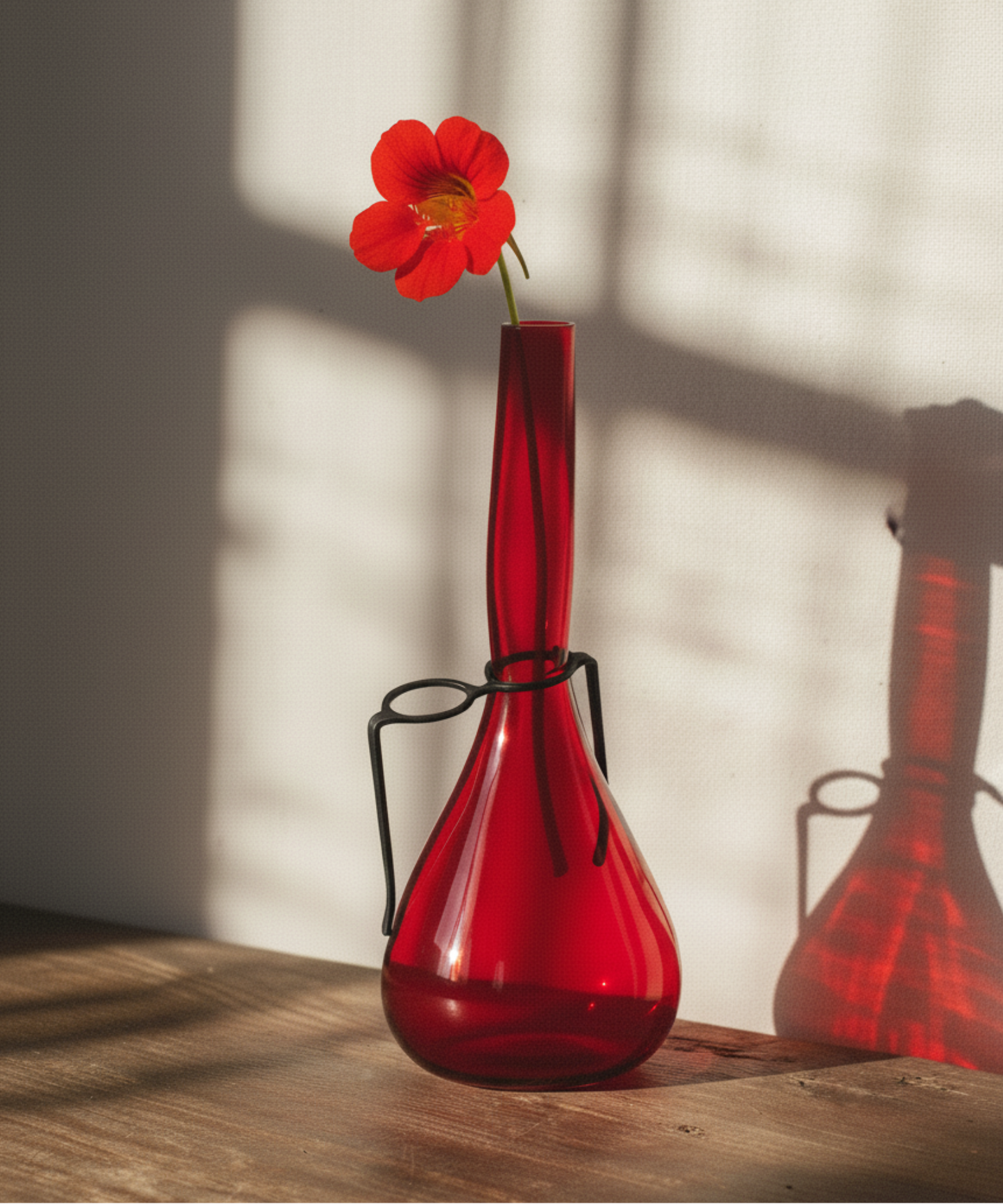 “… An idea that jumped the queue! The process started – sketches, modelling, rendering, making iron frames and the incredible Venini masters blowing molten glass into glasses.